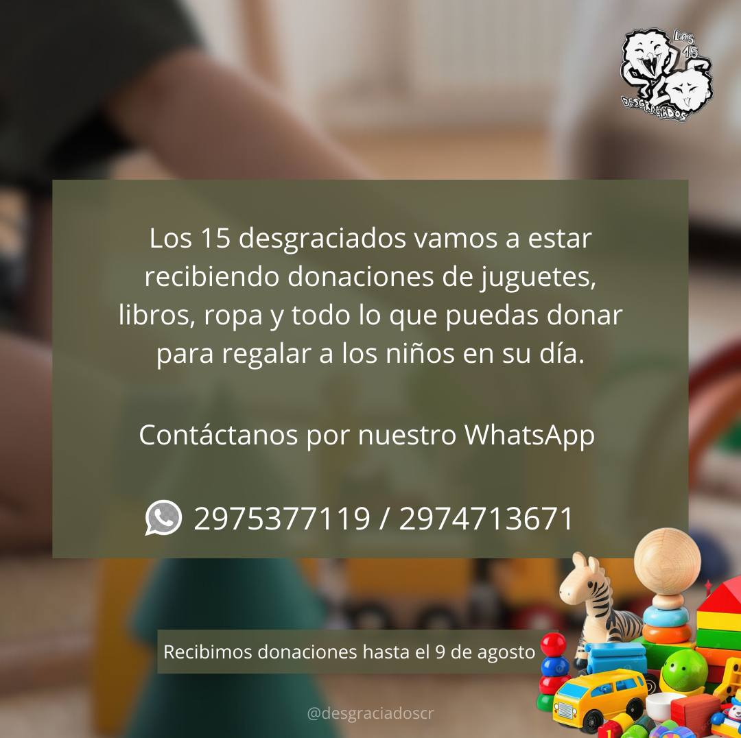 «Queremos llevar sonrisas y alegría a los más pequeños y necesitamos tu ayuda para lograrlo», expresaron. Por este motivo, solicitaron juguetes (nuevos o en buen estado), cuentos, libros, indumentaria, juegos de mesa, peluches y otros artículos que puedan alegrar a los más pequeños.