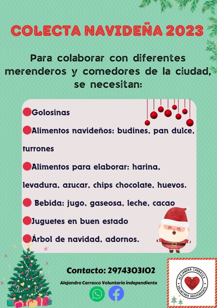 La voluntaria expresó respecto a la colecta: “Algunos piden golosinas, por lo menos una bolsa o juguetes en buen estado se van a estar repartiendo. Lo que es bebidas y todo lo que pueda acompañar la mesa navideña es lo que estamos solicitando”.