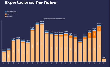 Por otro lado, se destaca que las exportaciones mineras lograron en 2024 la tercer mejor marca histórica para el país, alcanzando una facturación total de USD 4.647 millones. “Para el 2033 se proyecta que llegarán a USD 19 mil millones y para el 2035 se estima que la demanda de litio en el mundo se incrementará ocho veces aproximadamente”, sostienen. Como se puede observar en el gráfico, en enero de 2025 el 84% de las exportaciones corresponden a los minerales metalíferos (oro y plata).