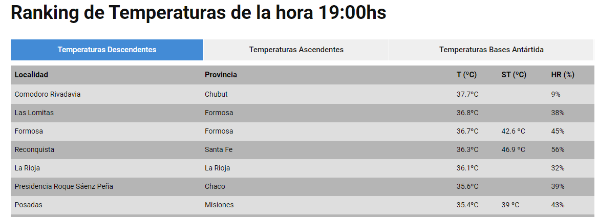 El registro coloca a Comodoro como la ciudad más calurosa del país, por encima de localidades del norte argentino que, si bien tienen menor temperatura, la humedad impulsa la sensación térmica por encima de los 40 grados en varios casos.