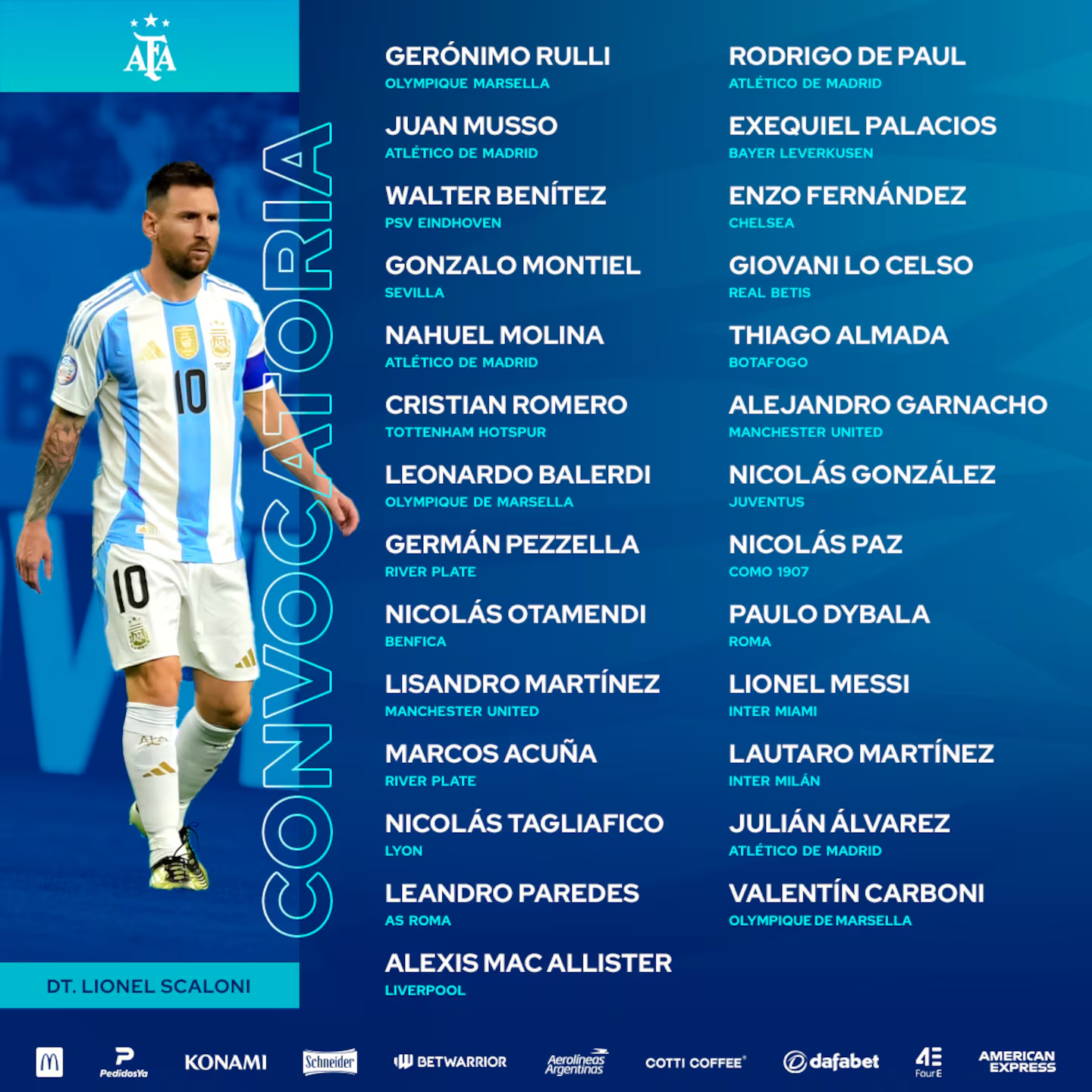 Este miércoles se publicó la lista de citados por el entrenador Lionel Scaloni para los partidos que la Selección argentina jugará ante Venezuela y Bolivia por las Eliminatorias Sudamericanas rumbo al Mundial 2026.