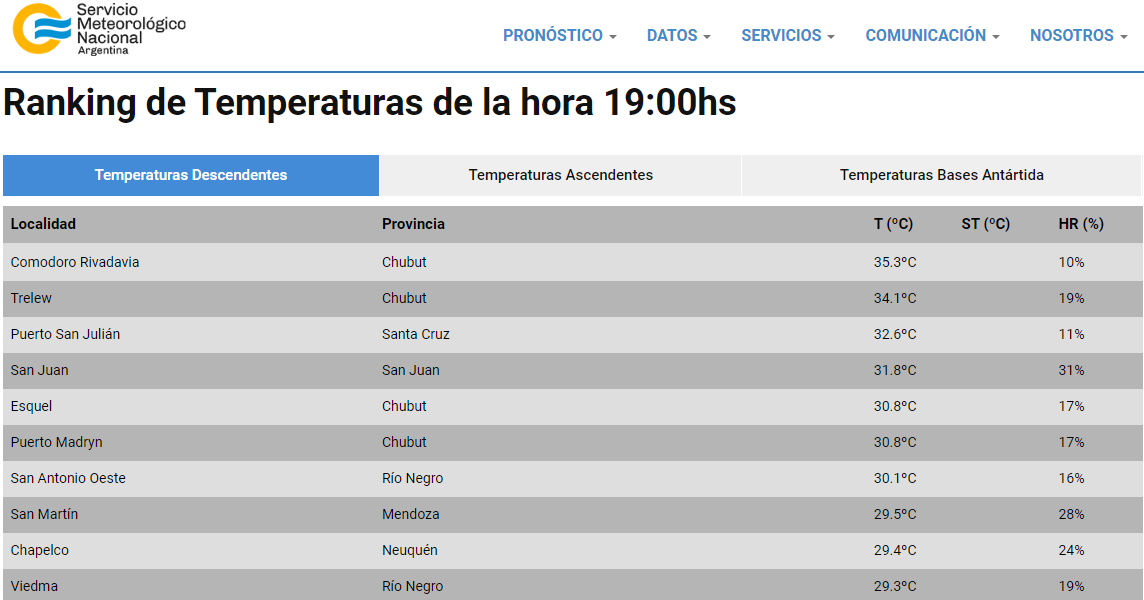 Comodoro atraviesa jornadas de intenso calor que se ven reflejadas en la alta temperatura máxima registrada. Este martes con 35.3 grados la ciudad del Petróleo es la más calurosa del país, encabezando el ranking del Servicio Meteorológico Nacional.