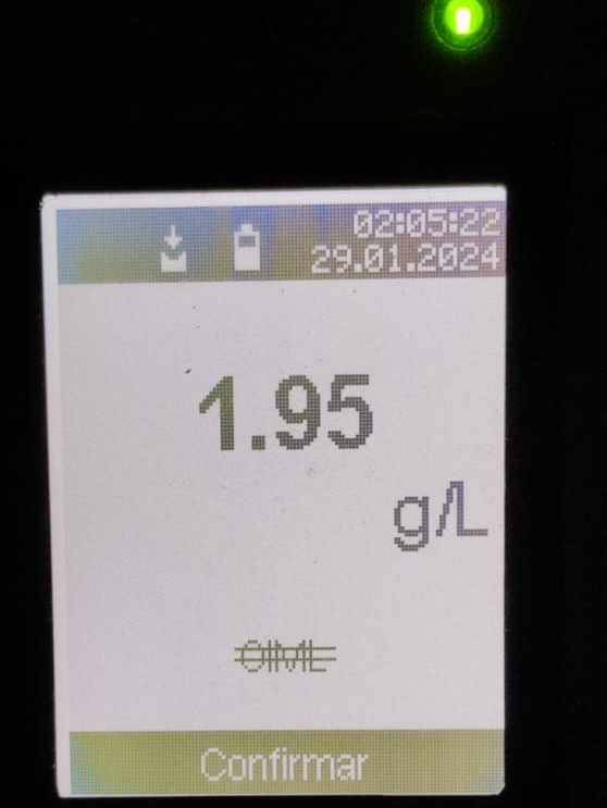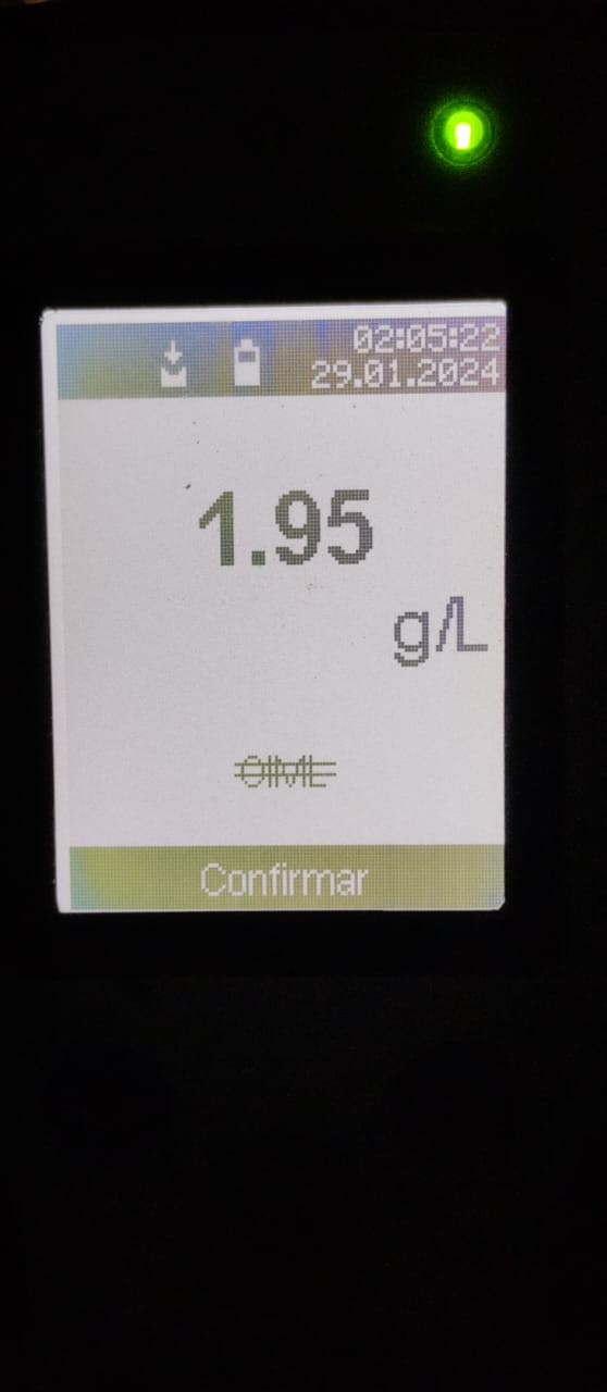 Tras solicitarle la documentación pertinente, se hace presente personal de tránsito quien procede a realizarle el test de alcoholemia, arrojando 1,95 g/L. Así mismo, proceden a realizarle el acta de infracción y el secuestro del rodado quedando a disposición del Tribunal de Faltas N°3; alojado en Corralón Municipal.