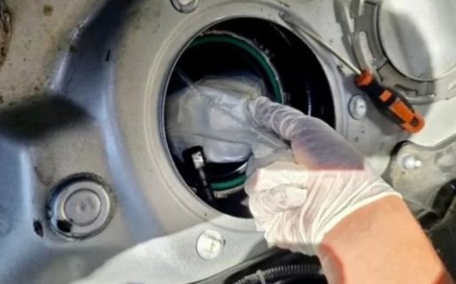 El hallazgo se produjo al descubrir manipulaciones inusuales en el tanque de combustible del automóvil. Al abrirlo en presencia de testigos, los agentes encontraron 14 paquetes rectangulares ocultos en su interior.