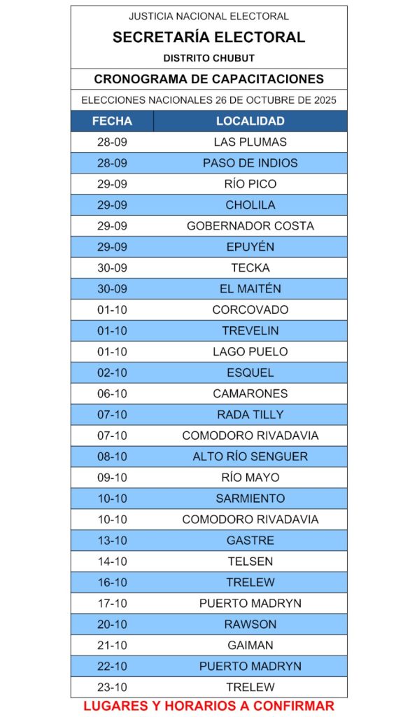 En Comodoro Rivadavia, la capacitación se realizará el 7 de octubre, al igual que en Rada Tilly.