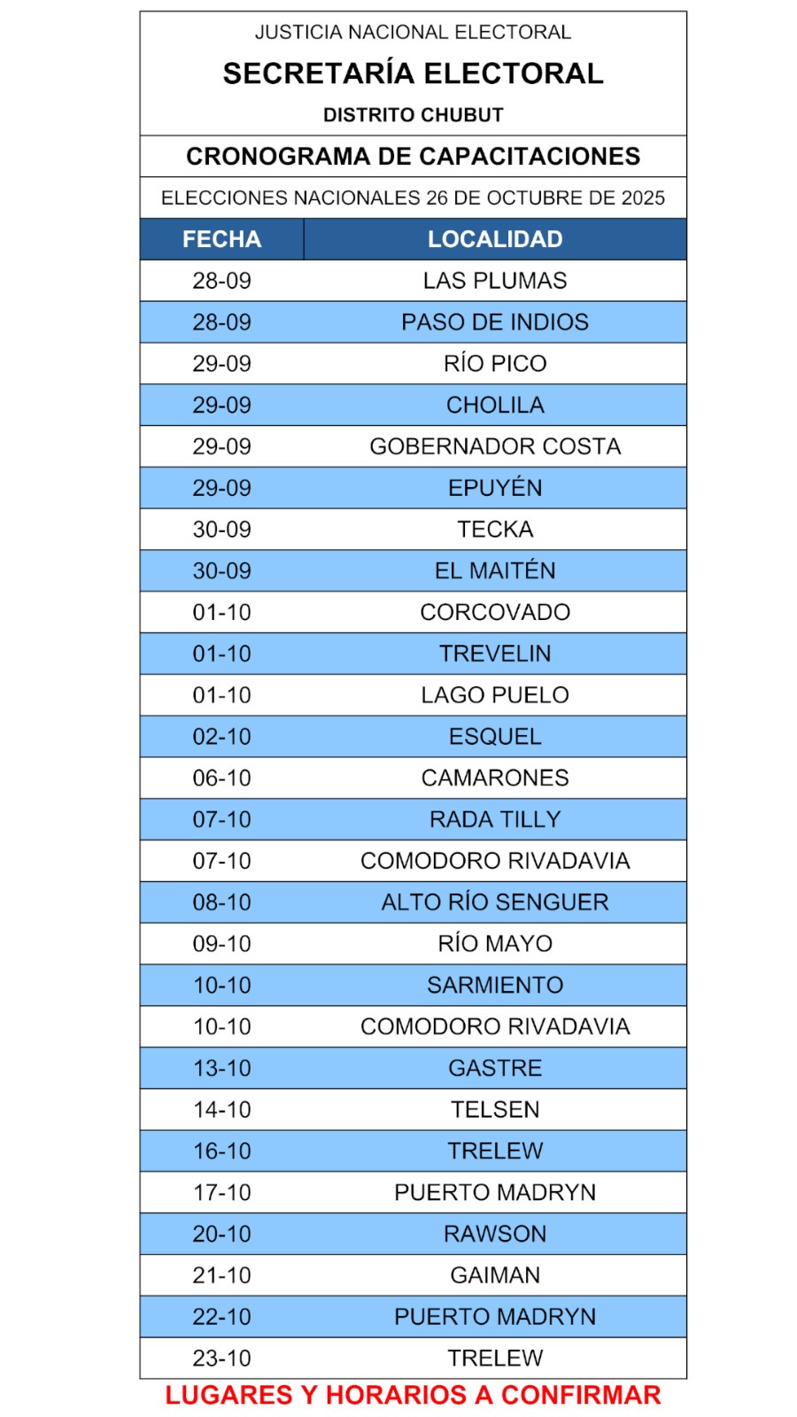 La Justicia Nacional Electoral anunció el calendario de capacitaciones presenciales para las Autoridades de Mesa y Delegados Judiciales de cara a las Elecciones Nacionales del 26 de octubre de 2025.