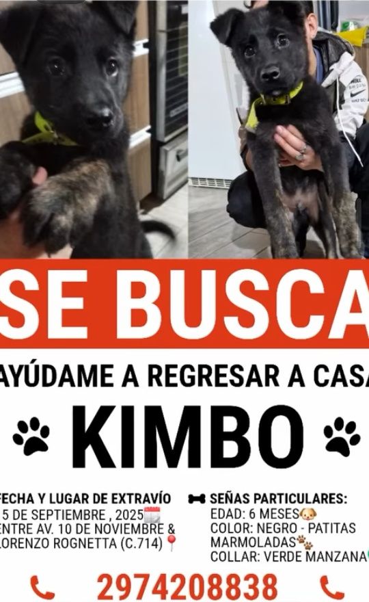 Kimbo es macho, de color negro con patitas atigradas y llevaba puesto un collar verde manzana al momento de desaparecer. Desde la organización expresaron que siguen buscándolo “con el corazón destrozado, pero con esperanza”.