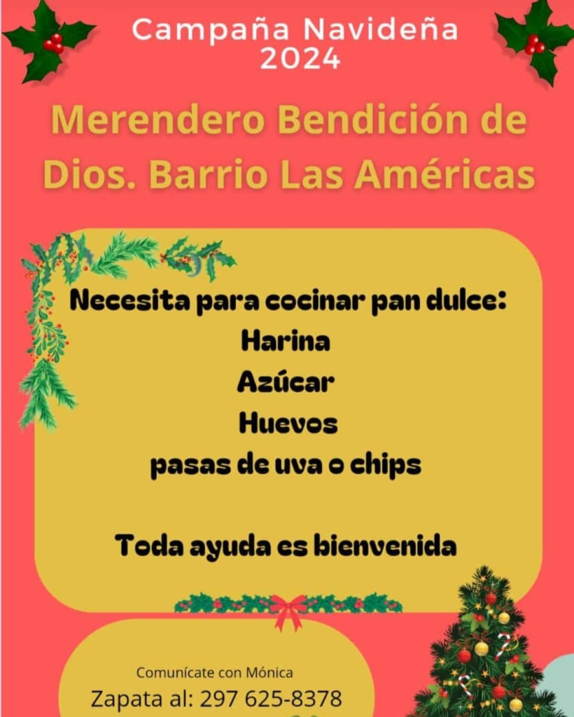 Aquellos interesados en colaborar pueden ponerse en contacto con Mónica al número 2976-2583-78, o llevar sus donaciones directamente al barrio Las Américas. «Ojalá Dios toque el corazón de mucha gente para que los chicos puedan disfrutar al menos de un pan dulce esta Navidad», concluyó.