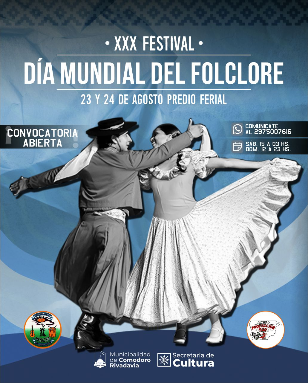 La ciudad se prepara para vivir una nueva edición del tradicional Festival Día Mundial del Folklore, que este año celebra su XXX aniversario. Este año, se lanzó una convocatoria abierta a todas las escuelas de danzas folclóricas de comodoro y la región para que formen parte de este emblemático evento cultural.