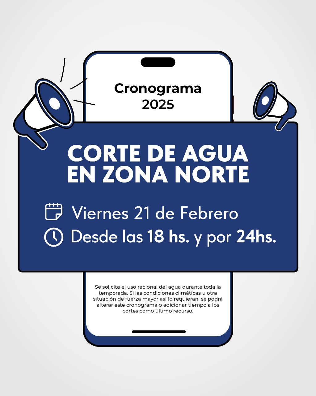 Por su parte, mañana sábado 22 de febrero, también desde las 18 horas y por un período similar, el corte afectará a las zonas sur y central de la ciudad.