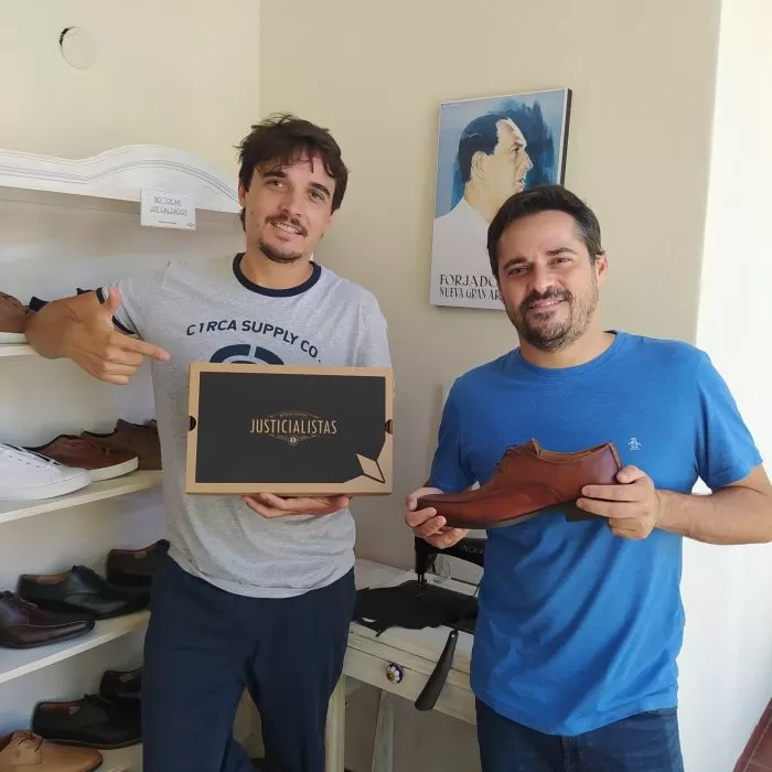 El padre de un amigo de ellos había recibido algunas máquinas como parte de pago por un negocio, les interesó la propuesta y empezaron a hacer alianzas con fábricas en Córdoba. «Justicialistas nace como una síntesis de dos ideas: que el valor agregado sea poner el trabajo formalizado y materia prima local, dos variables sensibles en la producción de calzado», resalta el emprendedor.
