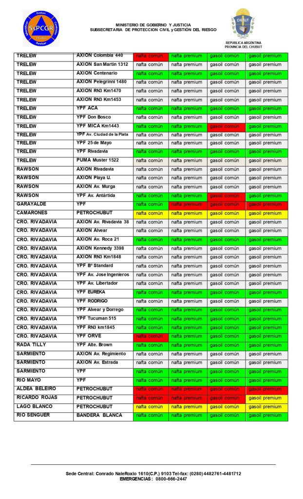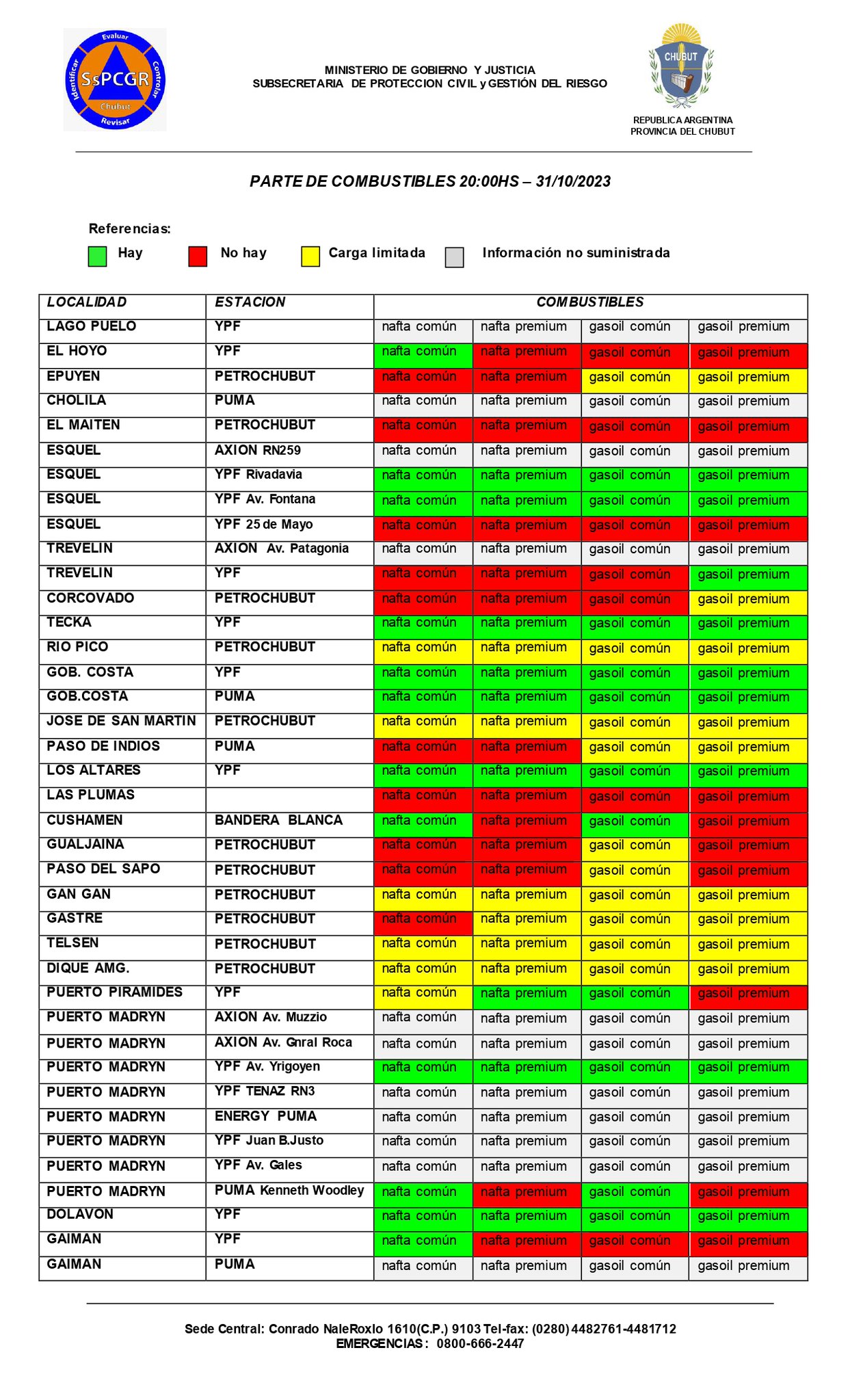En este sentido, desde la subsecretaría de Protección Civil y Gestión del Riesgo de Chubut presentaron un resumen de la situación actual en las estaciones de servicios de la provincia.