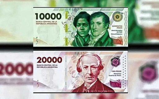 Desde este mes el Banco Central de la República Argentina (BCRA) espera poner a circular los billetes de $10.000 con las imágenes de María Remedios del Valle y de Manuel Belgrano. En los próximos días llegarán unos 770 millones de papeles que fueron encargados a la imprenta estatal China Banknote Printing and Minting Corporation (CBPM). El de $20.000 con la imagen de Juan Bautista Alberdi recién ingresaría al sistema más cerca de fin de año.