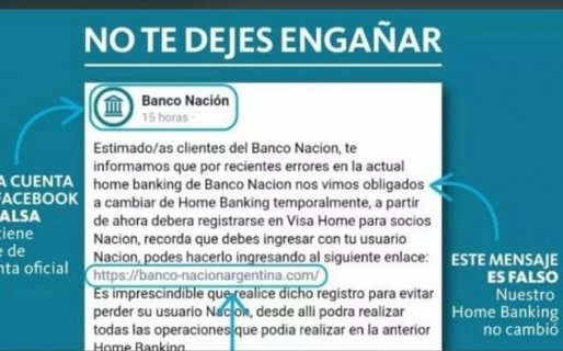 Además, hace hincapié en la importancia de no brindar ningún dato personal (usuarios, claves, contraseñas, pin, Clave de la Seguridad Social, Clave Token, DNI original o fotocopia, foto, ni ningún tipo de dato), por teléfono, correo electrónico, red social, WhatsApp o mensaje de texto.