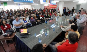 Junto al ex mandatario se encontraban las autoridades del gremio anfitrión, la senadora nacional Graciela Di Perna, y los integrantes de la agrupación convocante entre ellos Adrián Pizzi, Claudia Loyola, Leandro González, Ignacio Hernández, Pablo Novoa, Joge Elías, Fabián Puratich y Alberto Amhed.