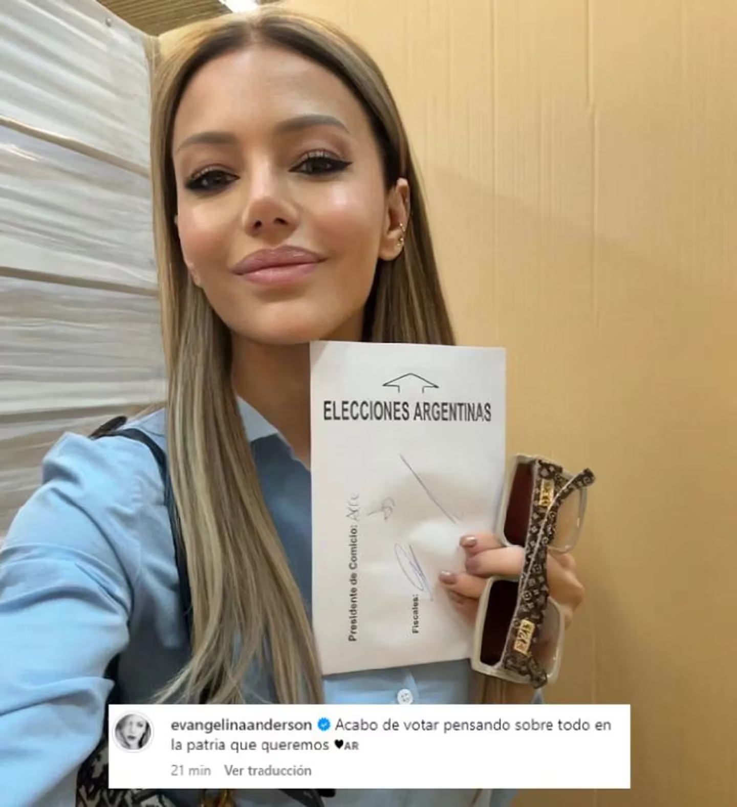 Con una camisa celeste y jean, Evangelina Anderson también formó parte de la jornada de balotaje. “Acabo de votar pensando sobre todo en la patria que queremos”, escribió en su cuenta oficial de Instagram.