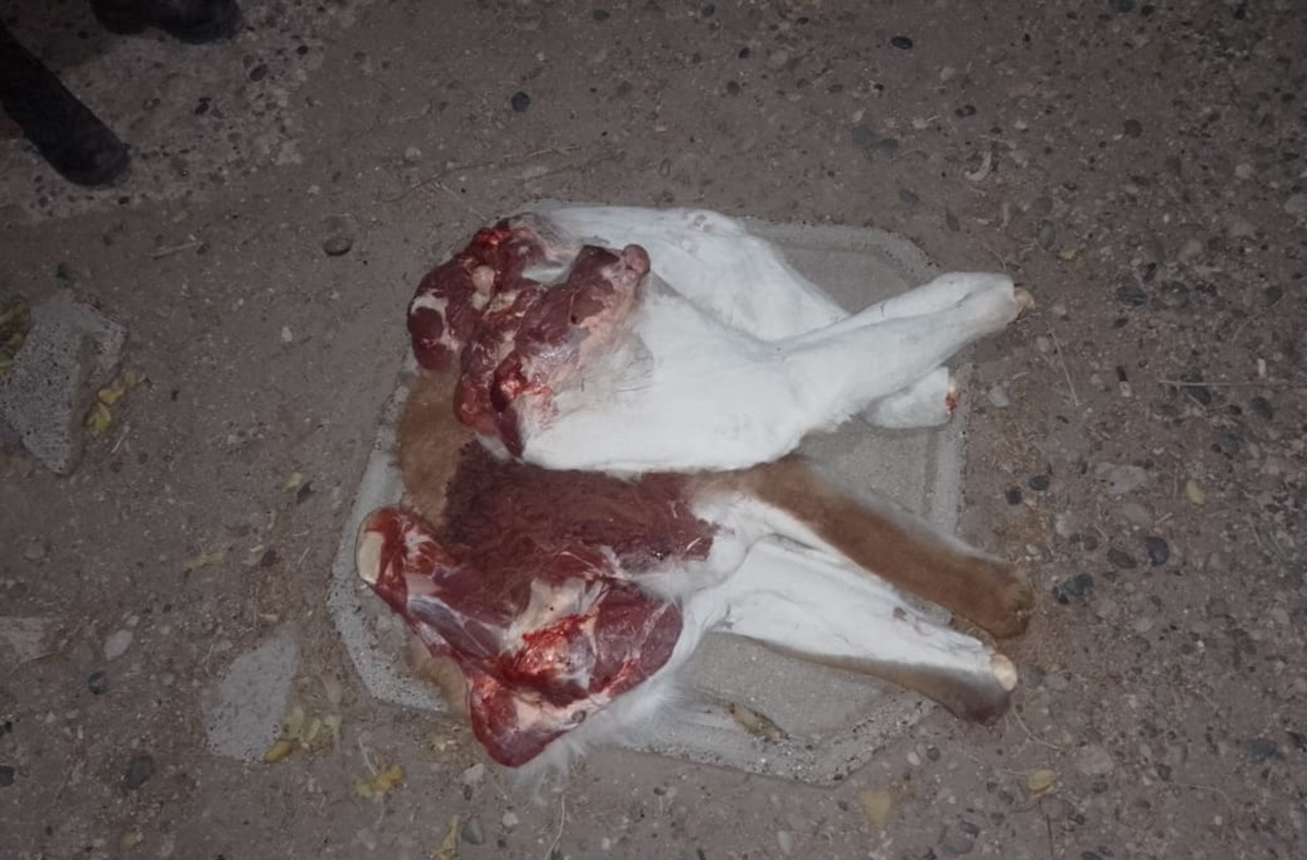 Los dos ocupantes del vehículo, de 39 y 29 años, no pudieron presentar la documentación requerida para cazar guanacos, ni tampoco armas de fuego ni cuchillos. Por lo tanto, se procedió al secuestro de dos paletas y dos cuartos faenados del animal.