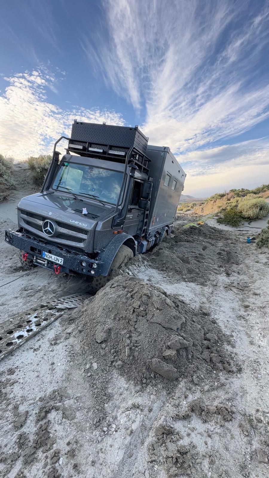 Asimismo, aclararon que «lo que necesitan es poder sacar el motorhome del lugar donde está encajado. La zona es entre Puerto Visser y Bahía Tiburón, a unos 20-30 kilómetros de Rocas Coloradas».