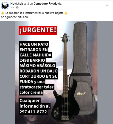 Desde la banda apelan a la solidaridad de la comunidad y solicitan cualquier información relevante que ayude a recuperar los instrumentos. Quienes puedan aportar datos se pueden comunicar al 297 411-8722.