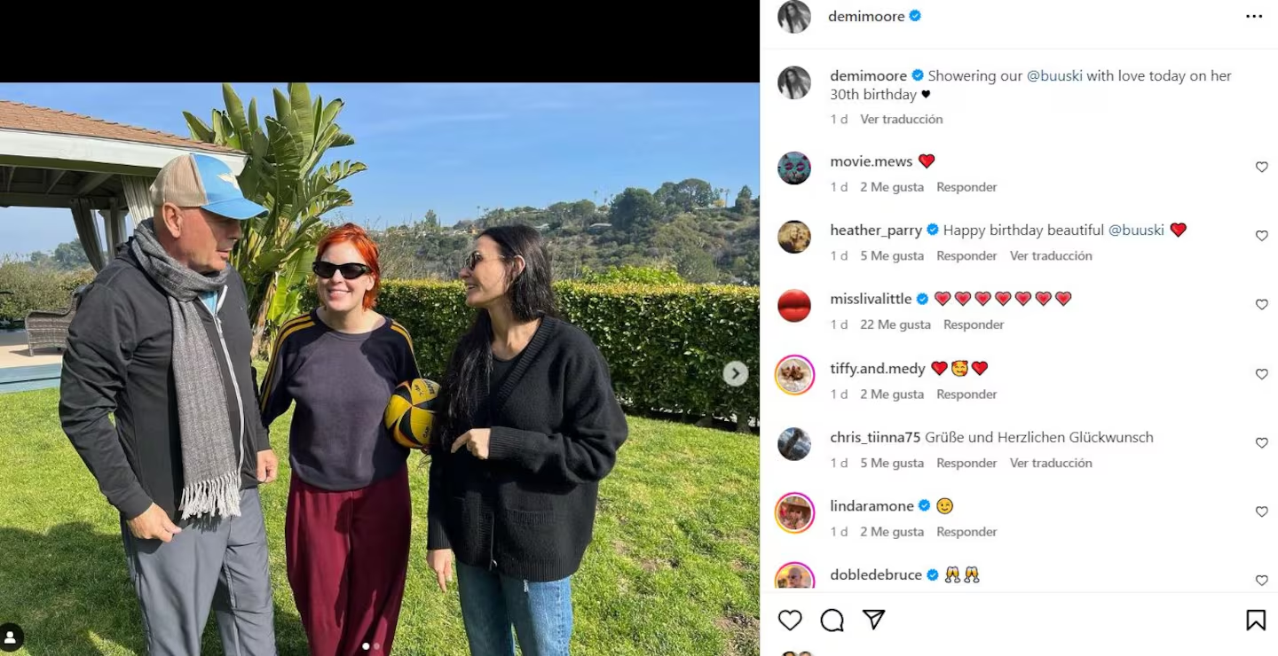 A través de su Instagram, Demi Moore compartió un momento de intimidad de Bruce Willis y una de sus hijas, Tallulah Willis. “Un baño de amor para Tallulah en el día de su cumpleaños”, escribió la actriz junto a una imagen con la estrella de Duro de matar.