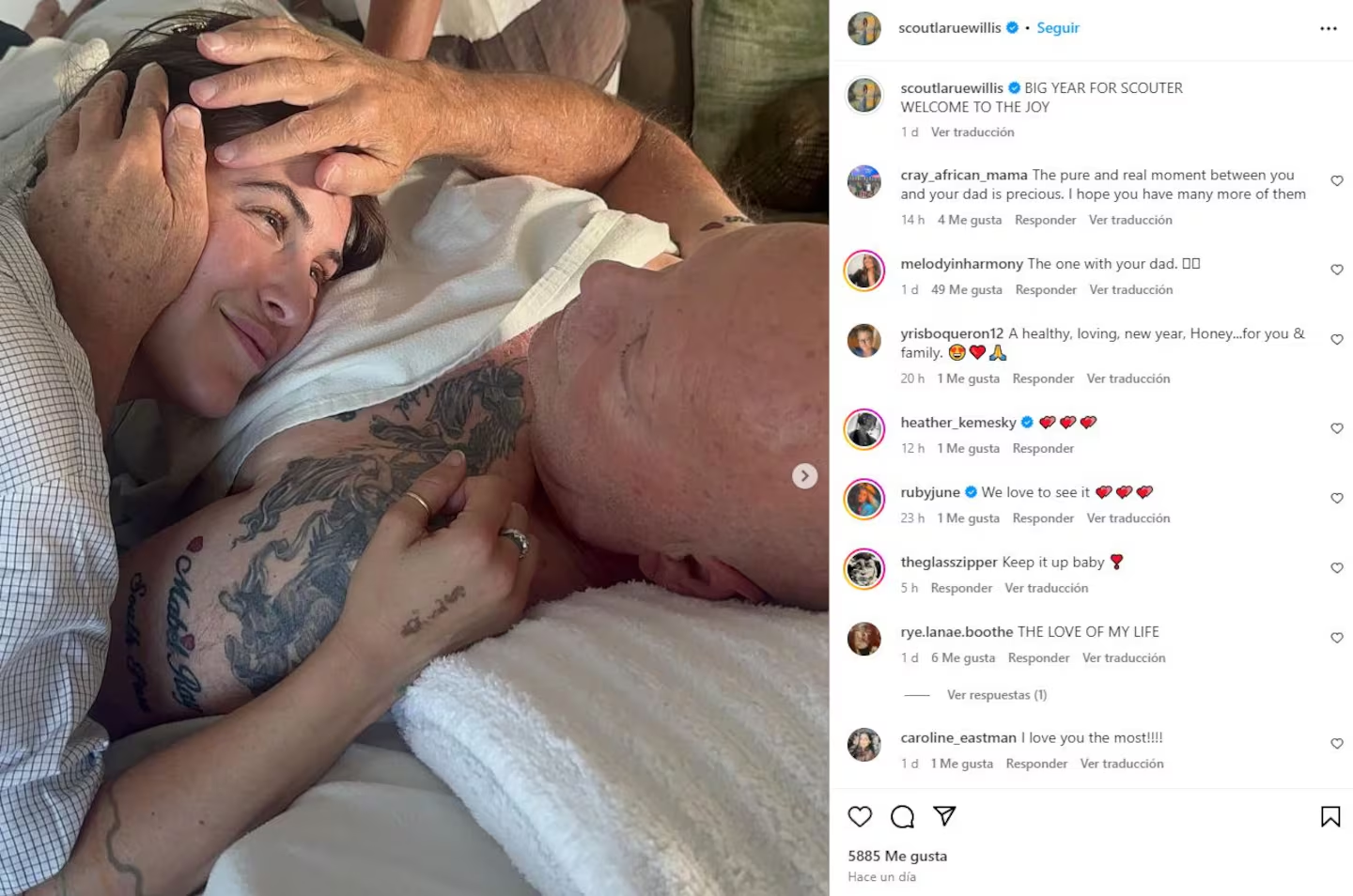Es la segunda vez que en los últimos meses la familia de Willis revela instantáneas inéditas. A principios de enero, Scout LaRue Willis hizo un compilado de fotos en su feed de Instagram en donde, además de ubicar diferentes momentos que pasó durante todo 2023, subió una imagen en la que está al lado su padre.