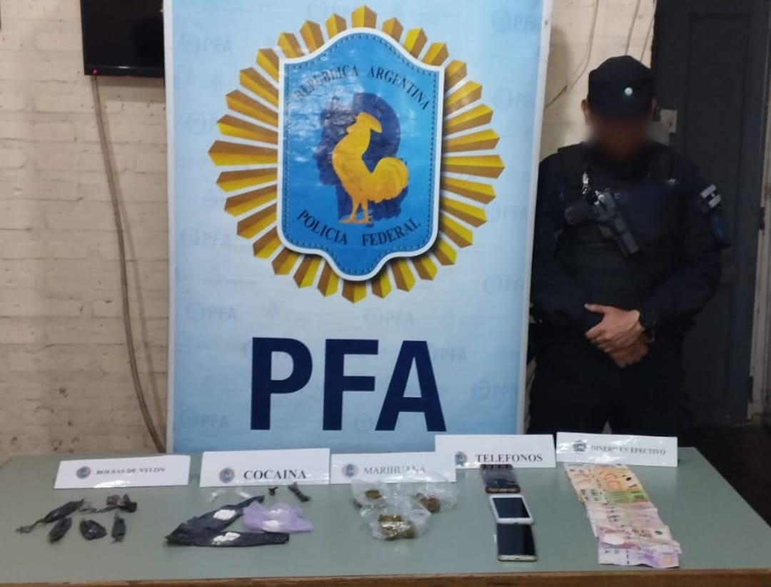 Asimismo, se incautaron varias dosis de cocaína y marihuana listas para su distribución, 8.000 pesos en billetes de baja denominación producto de las actividades ilícitas, 3 teléfonos celulares y documentación de interés para la causa.
