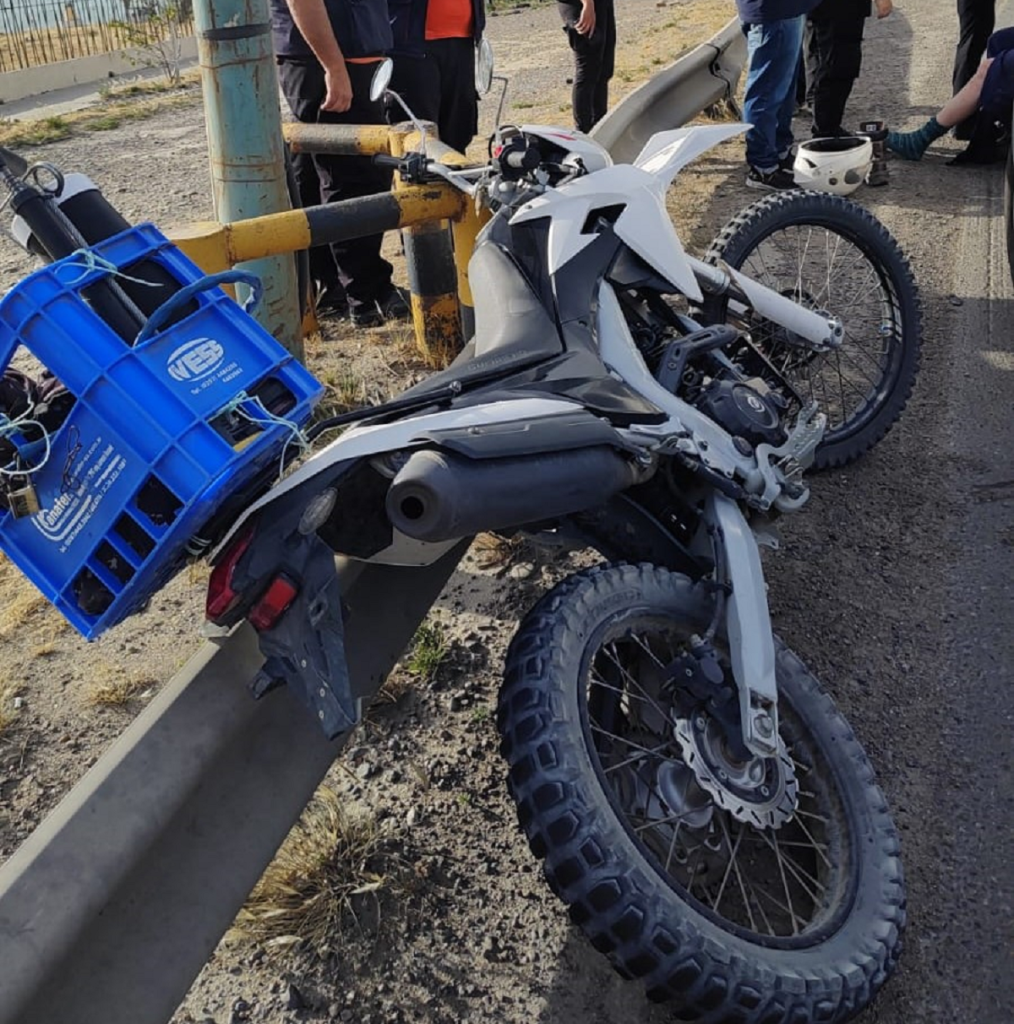 Este miércoles se registró un accidente sobre Ruta Nacional N°3, alrededor de las 08:10 horas. El conductor de una moto marca Guerrero GRX 250cc perdió el control por la presencia de combustible en la calzada y despistó sobre la ruta.