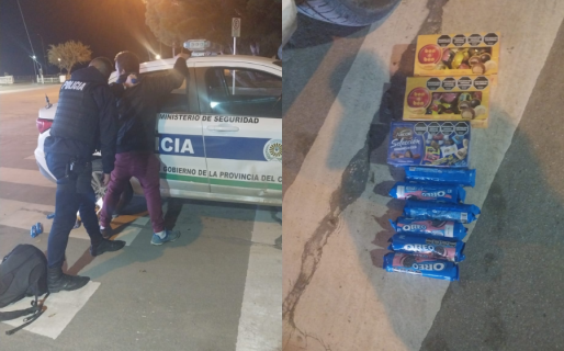 Ante la presunción de que podía haber sustraído productos, los uniformados descendieron del móvil e interceptaron al sujeto, identificado como A.E.V, de 33 años, quien posee antecedentes delictivos conocidos. Al efectuarle un palpado superficial, se le cayeron tres cajas de bombones y seis paquetes de galletitas Oreo, que no habían sido abonados.