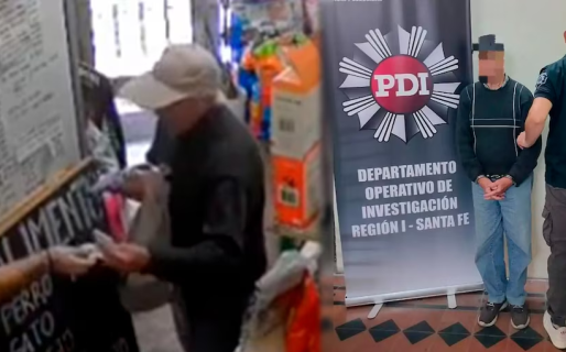 La captura se dio tras una tarea de los efectivos de la PDI, quienes reconstruyeron el recorrido del sospechoso a partir de los testimonios recabados y el análisis de las imágenes registradas por las cámaras de seguridad del comercio y de la zona.