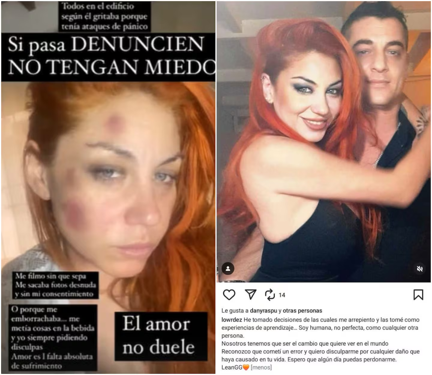 El primer episodio mediatizado ocurrió el 25 de noviembre del mencionado año. La artista alertó sobre su situación en redes, cuando publicó fotos de su cara hinchada y con hematomas. Tras el escándalo, el empresario irrumpió en la transmisión del ciclo A la Tarde (América) de ese mismo día para defenderse de las acusaciones.