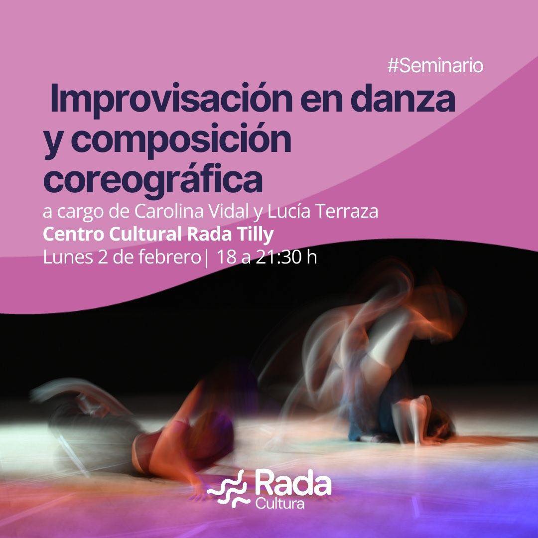 Este lunes 2 de febrero, el Centro Cultural Rada Tilly será sede del seminario «Improvisación en danza y composición coreográfica». La jornada intensiva se extenderá desde las 18:00 hasta las 21:30 horas.