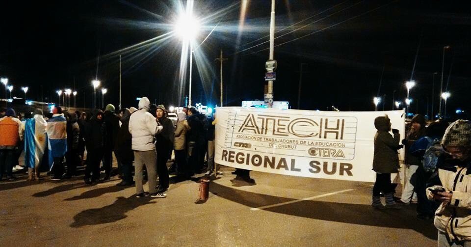 Los docentes de la Regional Zona Sur de ATECh panfletean desde las 5 de la mañana y hasta las 9:30, en rutas 3 y 26, para los vehículos particulares, mientras que interrumpieron el tránsito para los trabajadores petroleros.