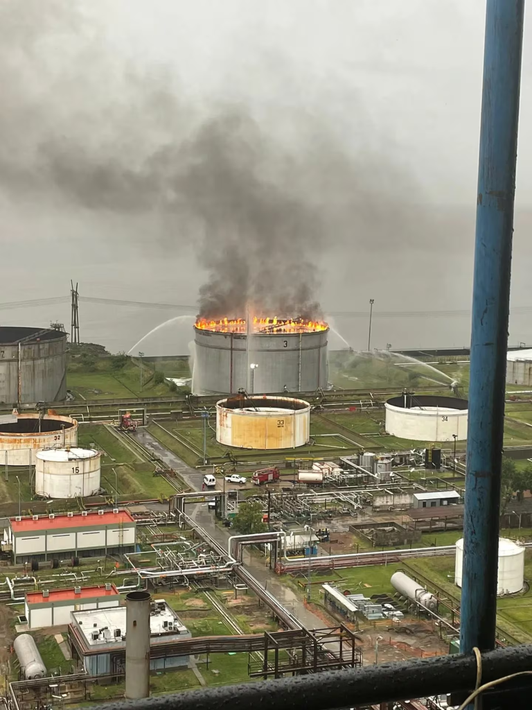 Aparentemente, alrededor de las 5 de la tarde un rayo provocó el incendio del techo de un tanque de petróleo crudo en la refinería de Raízen Argentina que suministra combustible a las estaciones de servicio Shell. Varias dotaciones de bomberos acudieron al lugar para combatir el incendio.