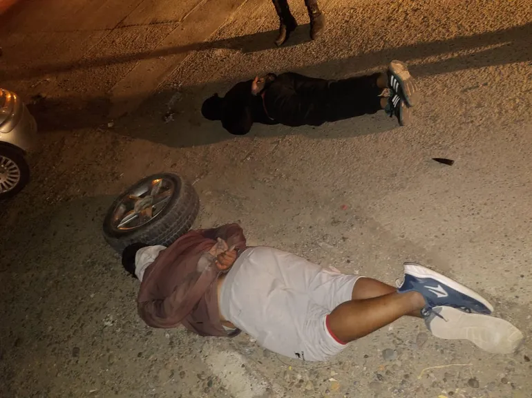 Un vecino alertó a la policía sobre dos hombres que estaban sustrayendo una cubierta del vehículo. Al llegar al lugar, los agentes interceptaron a los delincuentes en la esquina de Los Claveles y La Pinta. El primero de ellos llevaba la cubierta y el otro una llave de rueda.