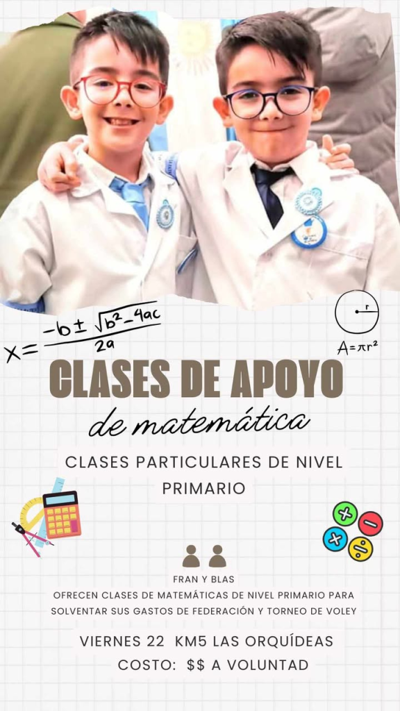 Los mellis ofrecen sus servicios de clases de apoyo en matemáticas destinadas a otros niños de primaria.