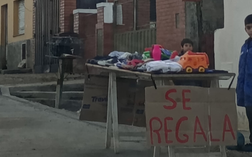 «La verdad no quise perder esta imagen», dijo emocionada. «Al pasar vi una mesita con algunos juguetes y ropita y creí que estarían vendiendo», contó la usuaria en Facebook.