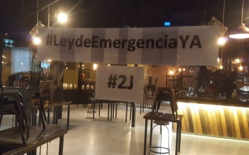 La postal se repite en diferentes locales comerciales en la parte gastronómica, con sillas por encima de las mesas y cartelería alusiva a la jornada de protesta, que solicita por una Ley de Emergencia para el sector.