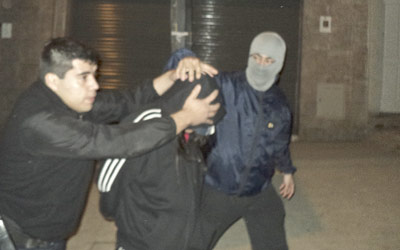 Momento en que “Johnny” Moreira es conducido a la alcaidía desde la casa de Alvear 1.348 donde fue capturado.