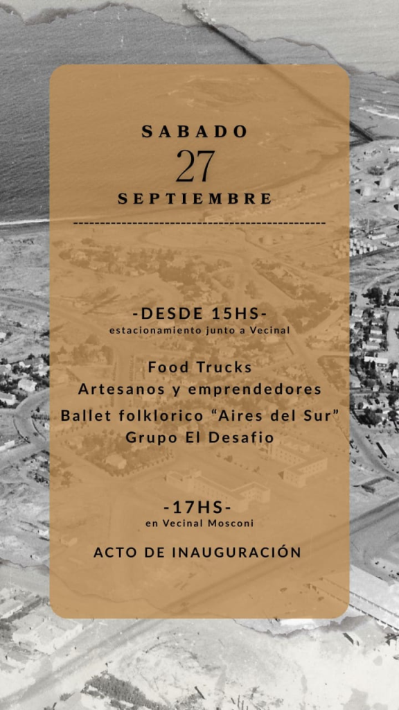La apertura será el sábado 27, con el acto oficial que incluirá la imposición del nombre de la plaza ubicada en Buco Petróleo Félix Beltrán y Avenida El Libertador, seguido de un reconocimiento a vecinos destacados. También se presentará el Grupo Diapasón de la Escuela de Arte N°806, habrá corte de torta, brindis y espectáculos en el estacionamiento de la sede vecinal con la participación del ballet Aires del Sur, feria de emprendedores, artesanos, carros de comida y el show musical de El Desafío.