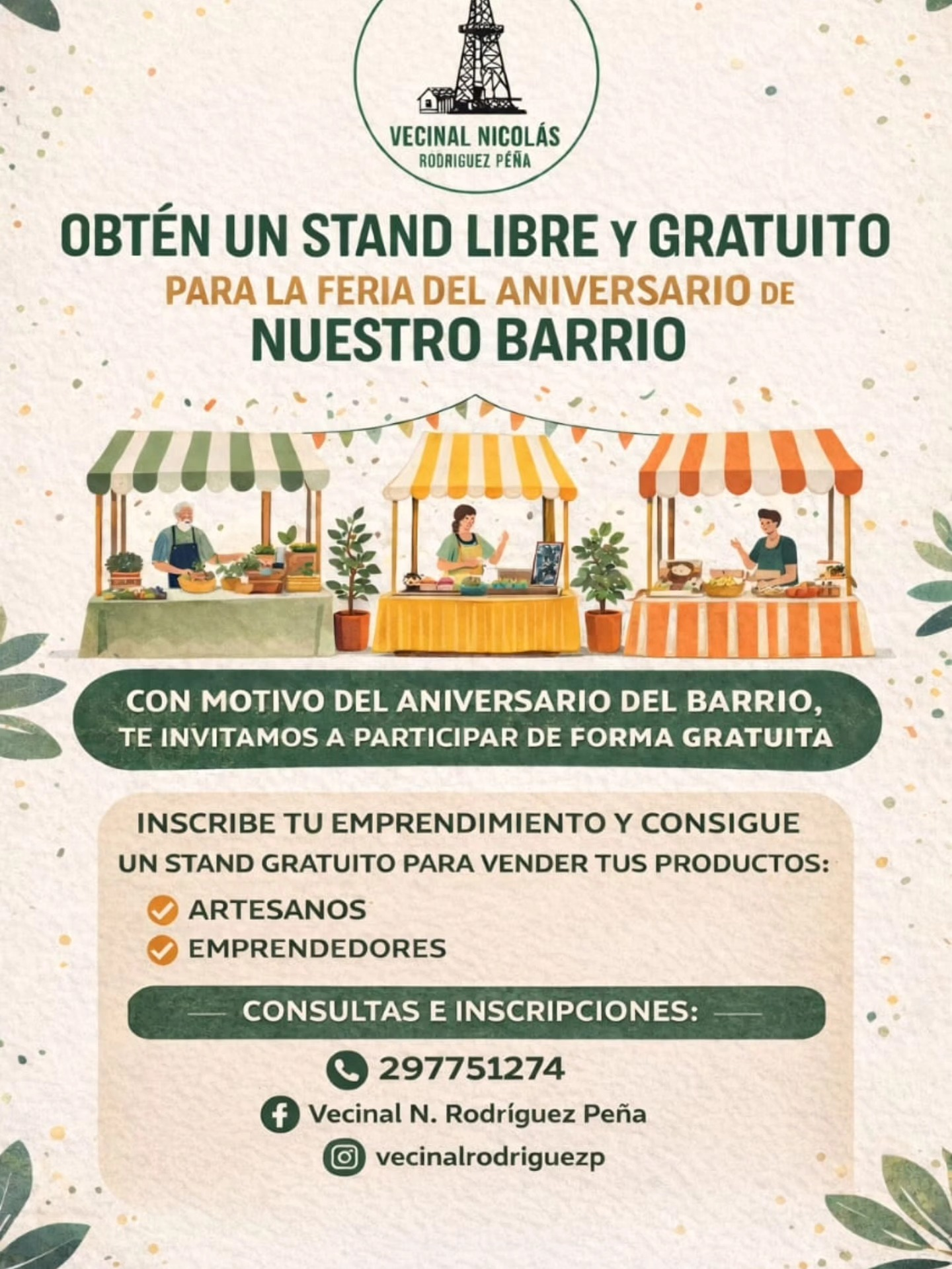En el marco del aniversario, la organización invita a artesanos y emprendedores a participar de manera gratuita. Quienes deseen formar parte de la feria podrán inscribirse para obtener un stand libre sin costo, con el objetivo de ofrecer y vender sus productos durante el evento.
