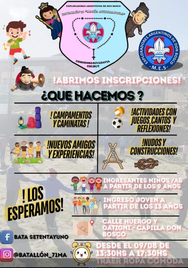 El Batallón de Exploradores 71 anunció la apertura de inscripciones para nuevos integrantes en las categorías Aspirantes e Ingreso Joven. Esta convocatoria está dirigida a niños y jóvenes de entre 9 y 13 años que deseen sumarse a esta activa comunidad exploradora.