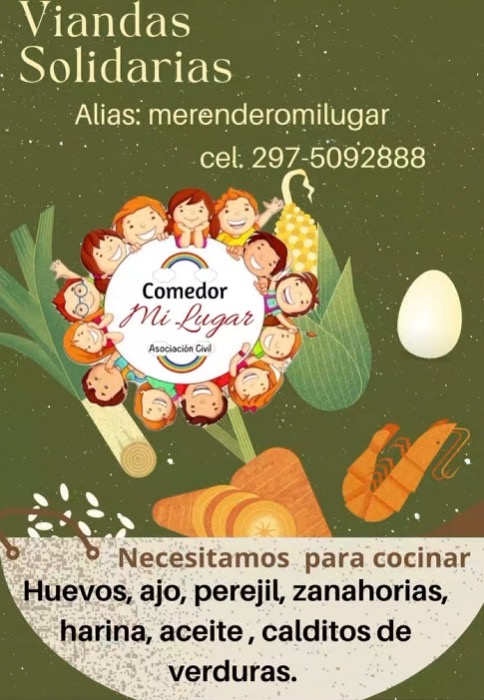 Quienes puedan colaborar pueden hacerlo a través del alias merenderomilugar o contactarse directamente al número 297-5092888.