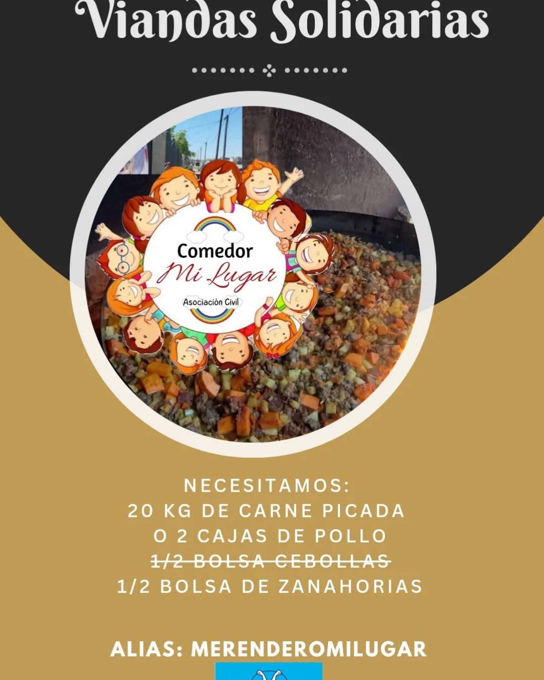 Quienes quieran donar pueden acercarse al comedor ubicado en Avenida Chile 2245 del barrio Abel Amaya o comunicarse al 2975092888. También pueden colaborar al alias merenderomilugar