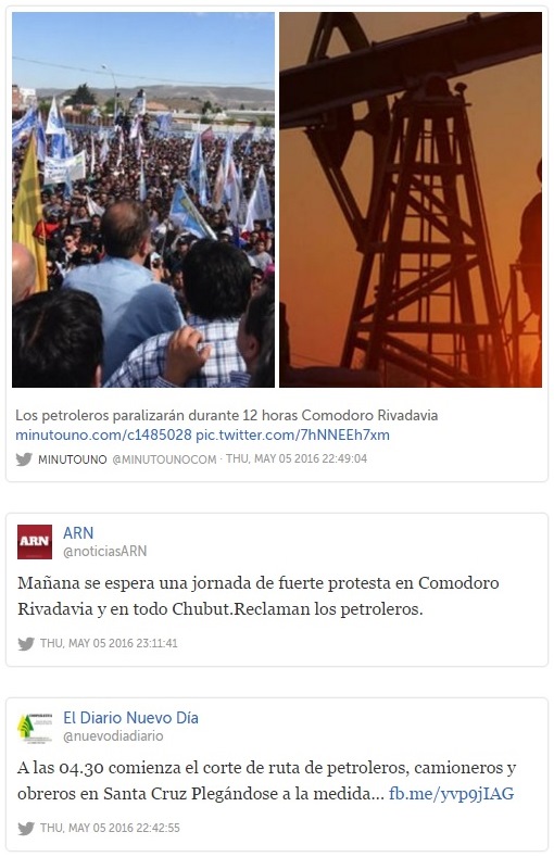 La movilización de mañana convocada por el gremio de Petroleros Privados de Chubut, tuvo repercusión en medios nacionales. El objetivo de este denominado #Comodorazo es defender los puestos de trabajo en toda la Cuenca del Golfo San Jorge.