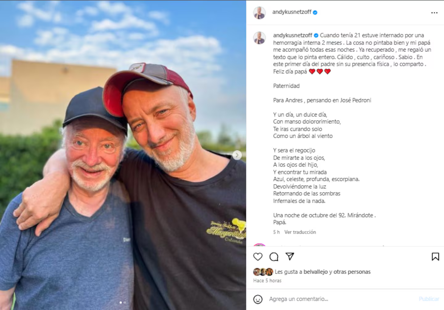 Andy Kusnetzoff vive un Día del Padre diferente, ya que es el primero sin Juan Carlos Kusnetzoff. El conductor lo recordó con un conmovedor posteo y una tierna anécdota en redes sociales.