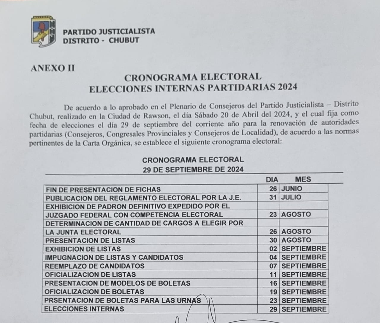 Esta tarde a las 15:00hs comenzó el Plenario de Consejeros del Partido Justicialista en Rawson, y se aprobó por unanimidad el cronograma electoral para las elecciones internas partidarias 2024.