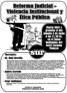 En momentos en que se discute aún la implementación de la reforma judicial y todavía no hay acuerdo sobre las consecuencias que la misma tendrá sobre la vida cotidiana de las personas y sobre las reglas del juego democrático, esta charla se plantea como un ámbito propicio para intercambiar ideas y reflexionar acerca de un tema que no es menor: ¿para qué sirve y para qué debe servir la Justicia?, se preguntaron desde Proyecto Sur.