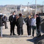 El intendente Martín Buzzi, el subsecretario de Obras Públicas, Maximiliano López y los representantes vecinales del Barrio Quirno Costa y San Cayetano, Juan Mera y Mariela Chávez respectivamente, recorrieron en horas del mediodía del miércoles la obra de pavimentación de la Avenida 10 de Noviembre que se conectará en su traza con las arterias principales Estados Unidos y Polonia.