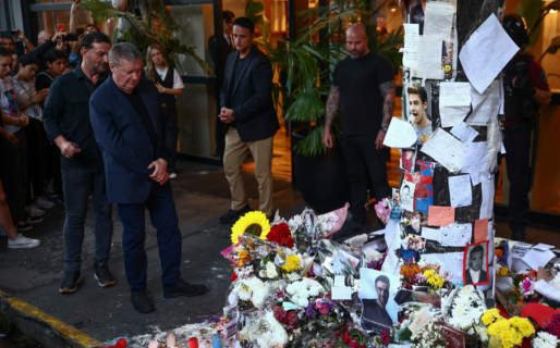 Después de salir del lugar donde ocurrió la trágica muerte de su hijo, el hombre se acercó al santuario que las admiradoras crearon para recordar la carrera del artista y leyó algunos de los mensajes.
