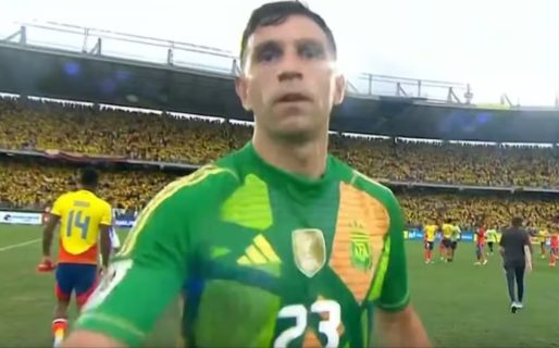 La Selección argentina perdió 2-1 ante Colombia en Barranquilla por las Eliminatorias. Tras el pitazo final estalló el festejo de los locales, que vivieron el partido como si fuera una final y que, además, tuvieron actitudes repudiables contra los jugadores albicelestes. Uno de los que lo sufrió fue el Dibu Martínez, que reaccionó con furia y le pegó a una cámara que le hizo un seguimiento personalizado.